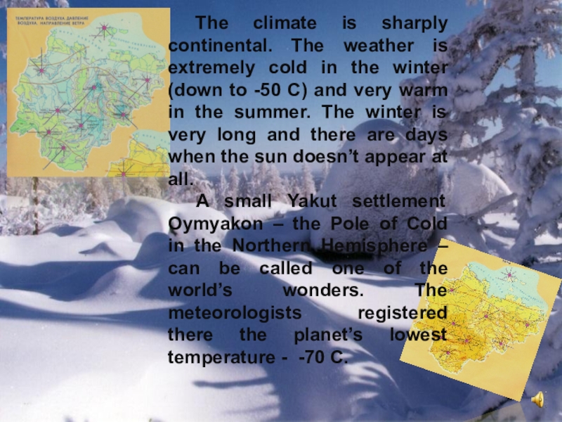 Слайд 6The climate is sharply continental. The weather is extremely cold in