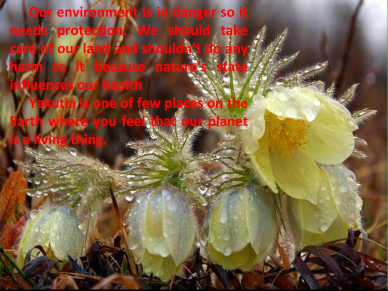 take care of our land and shouldn’t do any harm to it because nature’s state influences our health