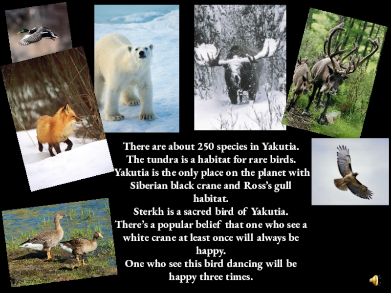 There are about 250 species in Yakutia. The tundra is a habitat for rare birds. Yakutia