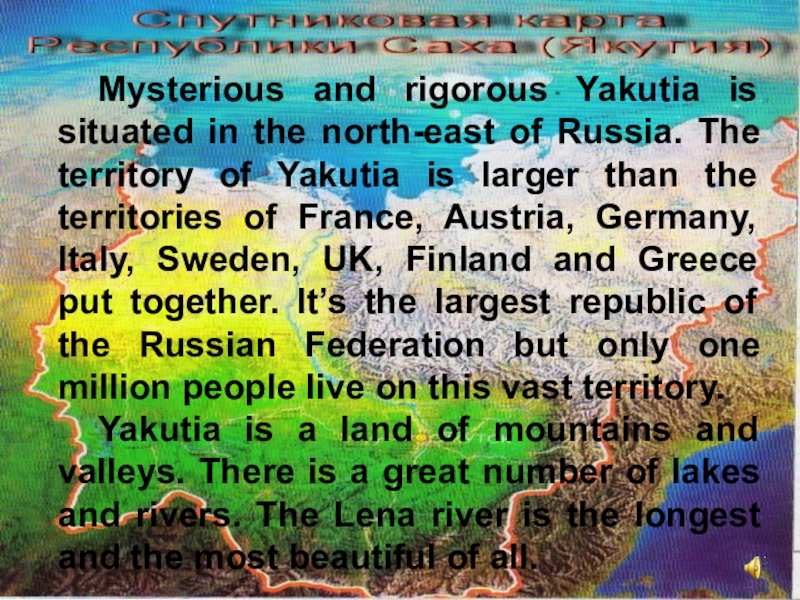 Слайд 2 Mysterious and rigorous Yakutia is situated in the north-east of Russia.