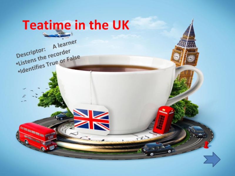 Teatime in the UKDescriptor:   A learnerListens the recorderIdentifies True or False