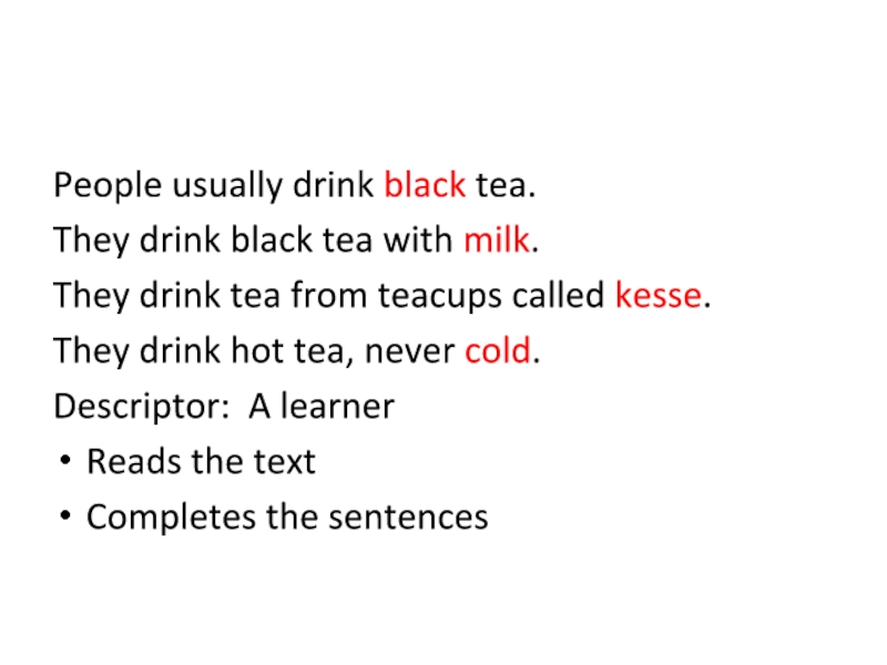 Слайд 9People usually drink black tea.