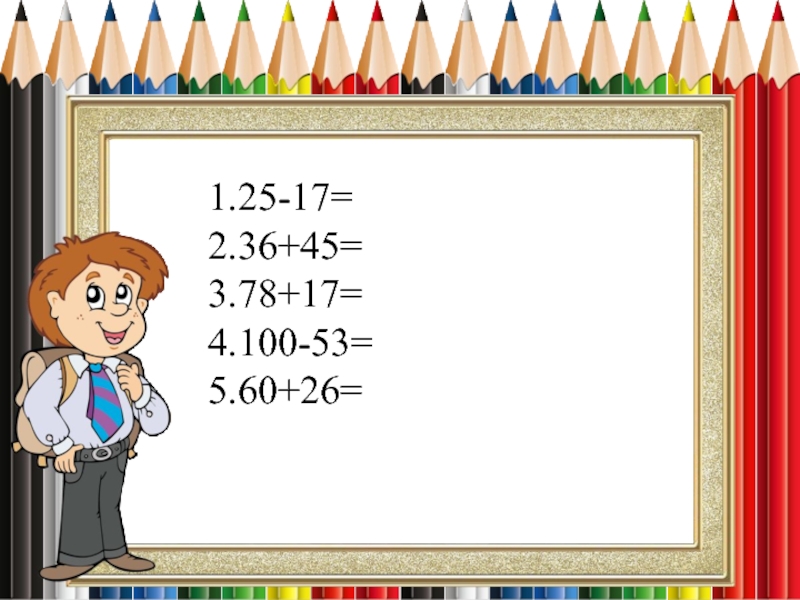 1.25-17=2.36+45=3.78+17=4.100-53=5.60+26=
