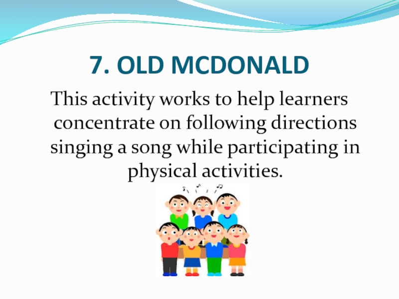 words and melody to Ol’ McDonald. The activity is a replica of the song Ol’ McDonald. The words are changed