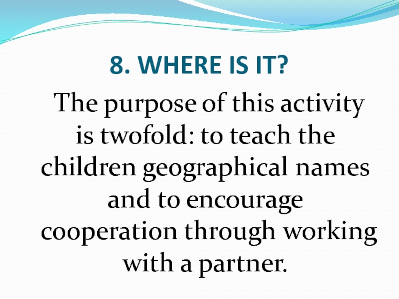 twofold: to teach the children geographical names and to encourage cooperation through working with a partner.