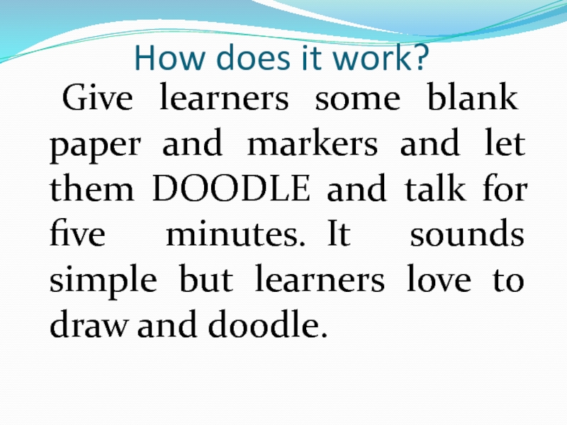 and let them DOODLE and talk for five minutes. It sounds simple but learners love to draw and doodle.