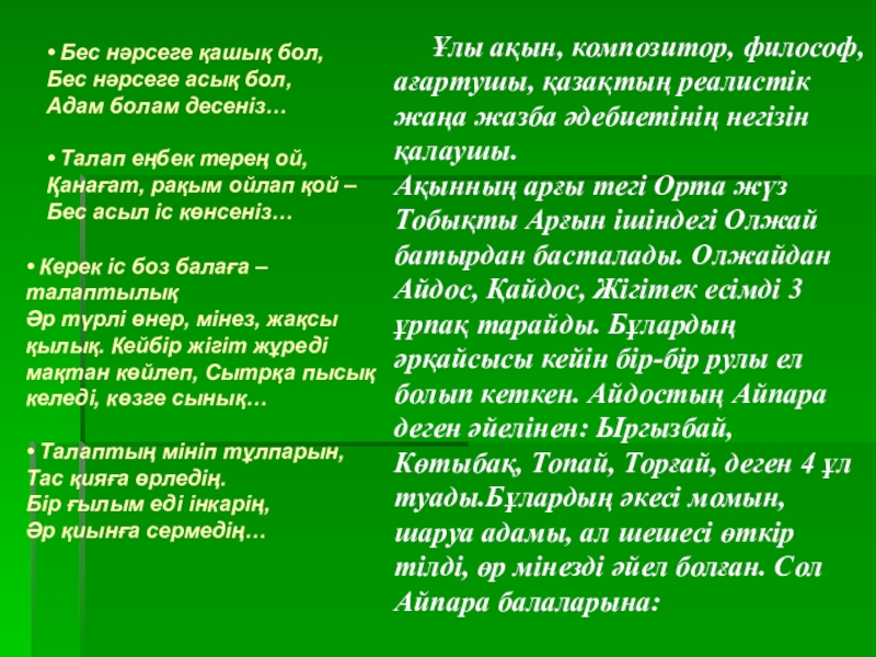 • Бес нәрсеге қашық бол,