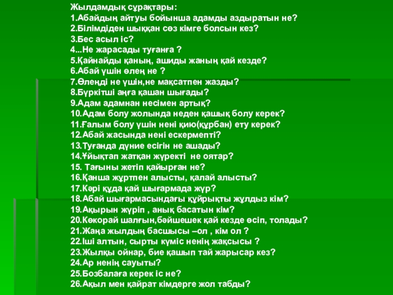 Бес нәрсеге асық бол,