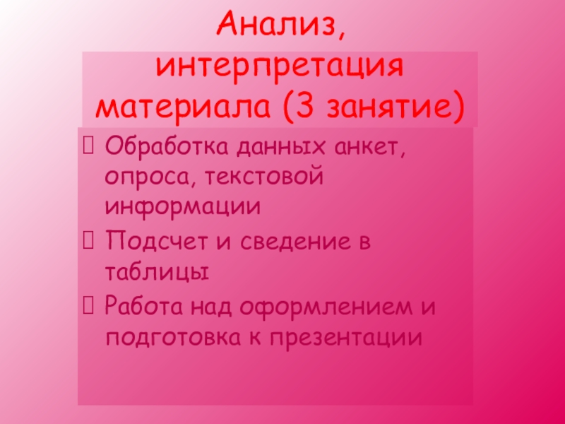 Слайд 10Анализ, интерпретация материала (3 занятие)