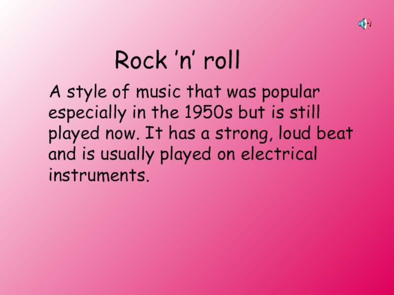 especially in the 1950s but is still played now. It has a strong, loud beat and is usually played on electrical instrumеnts.