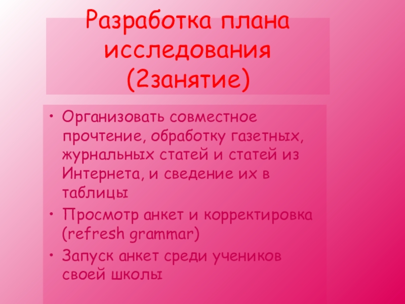 Сориентировать на составление анкет и сбор материала к сл занятию.