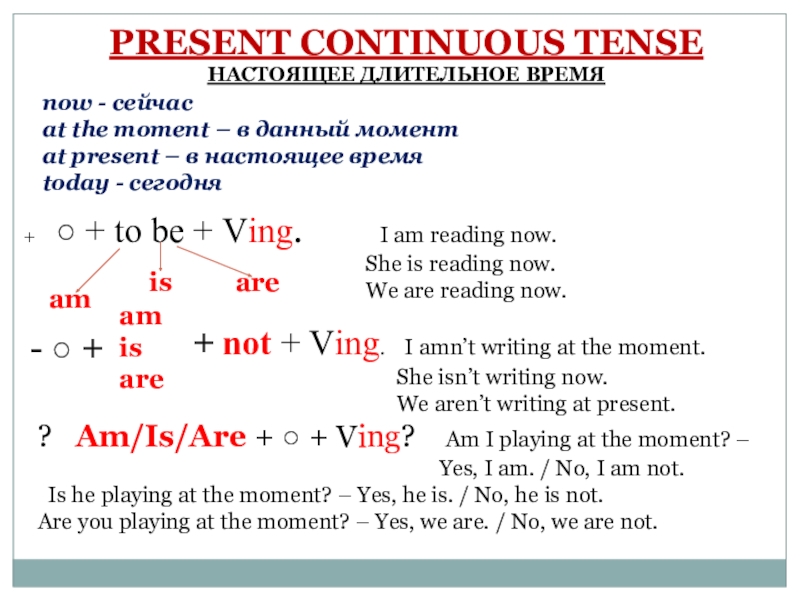 ? Am/Is/Are + ○ + Ving? Am I playing at the moment? –