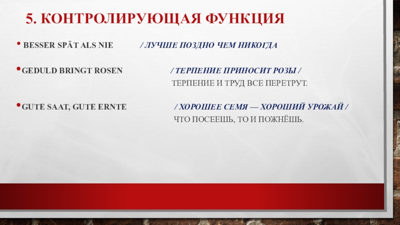 5. Контролирующая функция  Besser spät als nie       / Лучше поздно чем