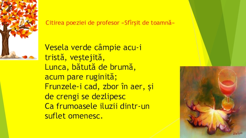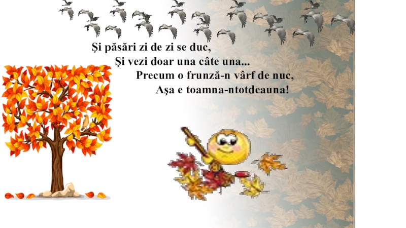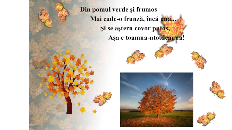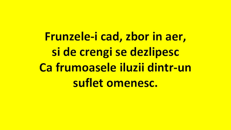 Frunzele-i cad, zbor în aer, și de crengi se dezlipesc