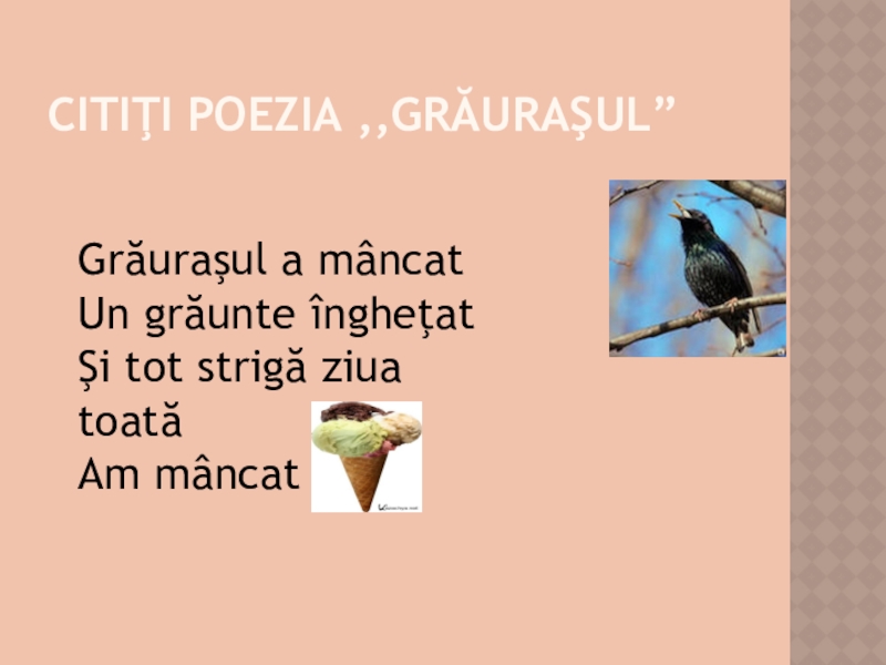 Слайд 8Citiţi poezia ,,Grăuraşul”