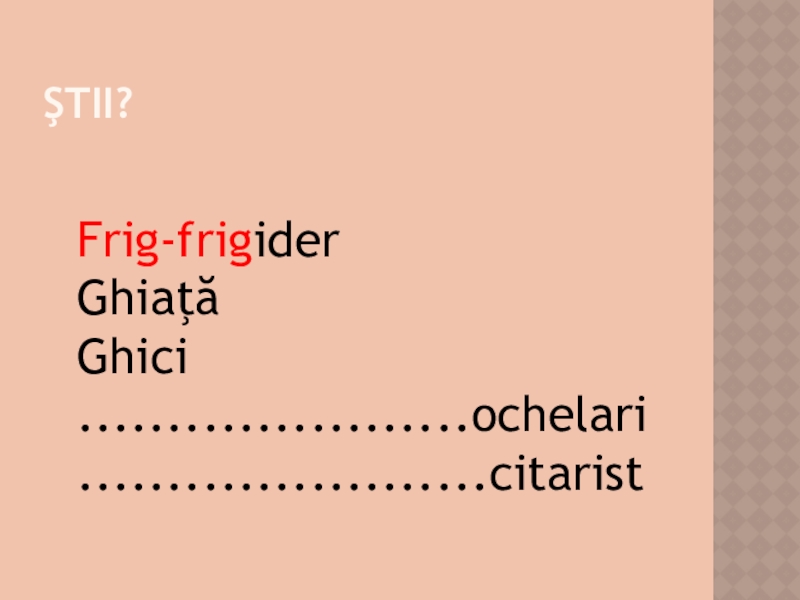 Ştii?Frig-frigiderGhiaţăGhici......................ochelari.......................citarist