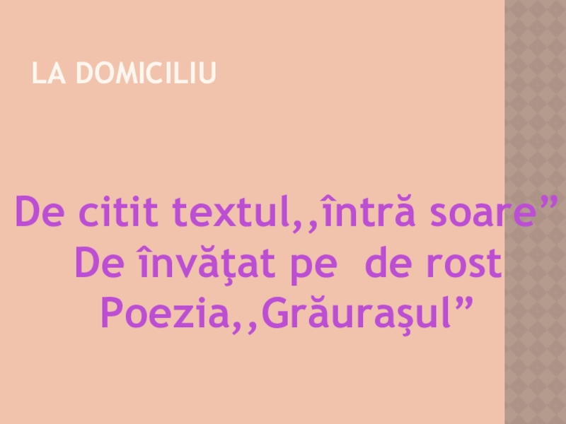 La domiciliuDe citit textul,,întră soare”De învăţat pe de rostPoezia,,Grăuraşul”
