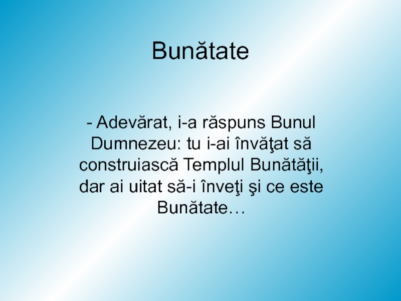 Templul Bunătăţii, dar ai uitat să-i înveţi şi ce este Bunătate…