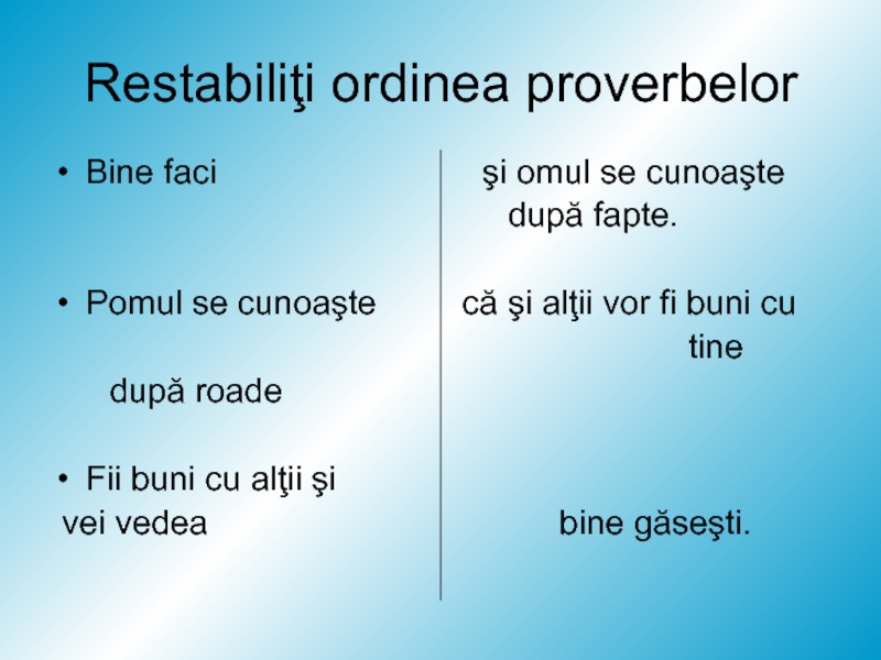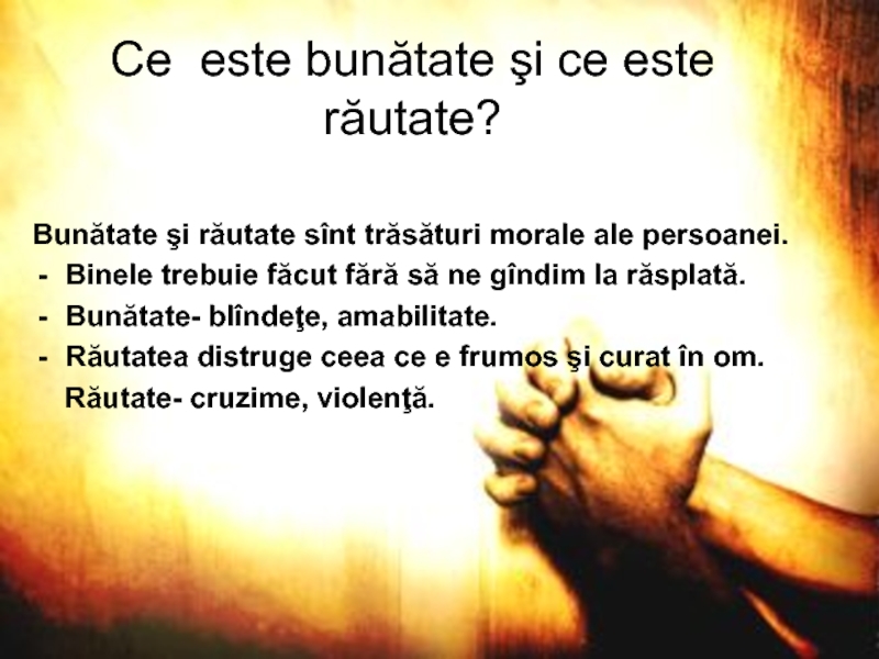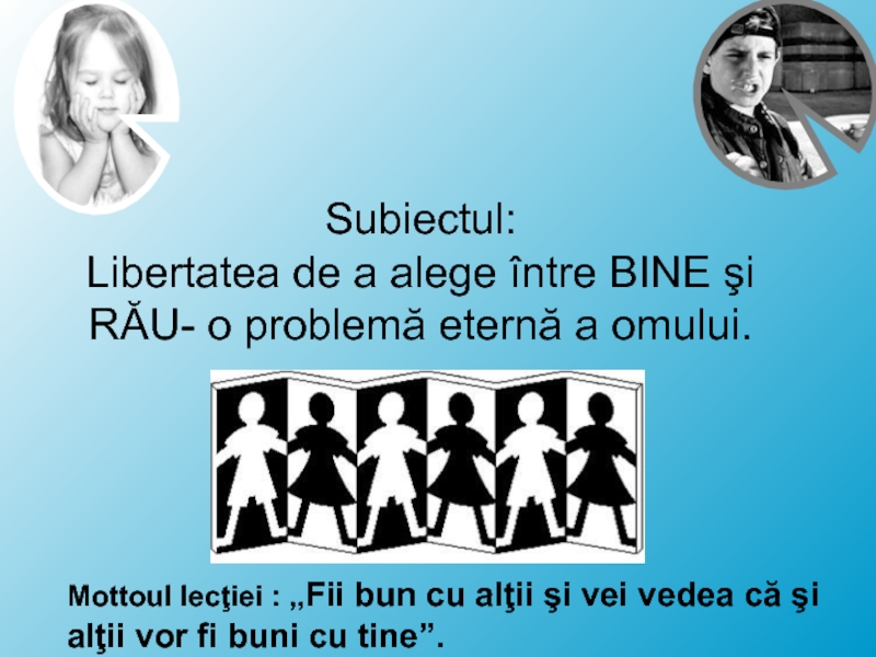 Mottoul lecţiei : ,,Fii bun cu alţii şi vei vedea că şi alţii vor fi buni cu tine”.