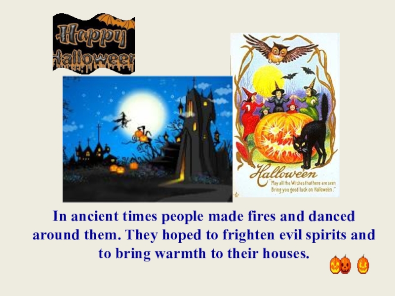 In ancient times people made fires and danced around them. They hoped to frighten evil spirits and