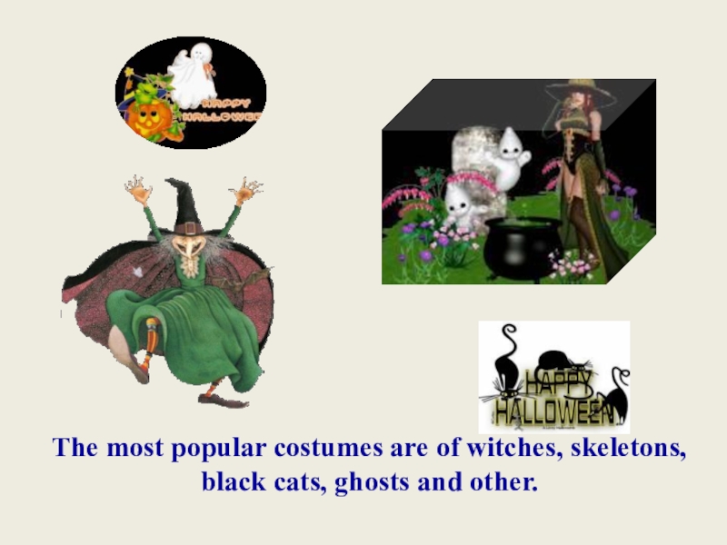 Слайд 8The most popular costumes are of witches, skeletons, black cats, ghosts