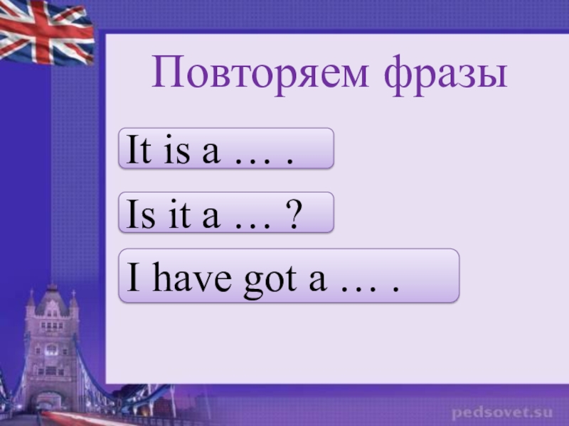 Повторяем фразы It is a … .Is it a … ?I have got a … .