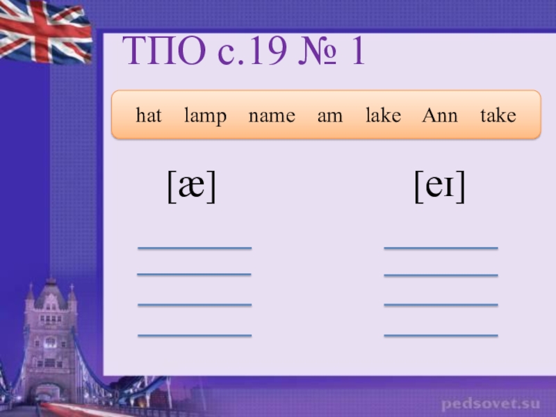 ТПО с.19 № 1[æ]           [eɪ]hat  lamp
