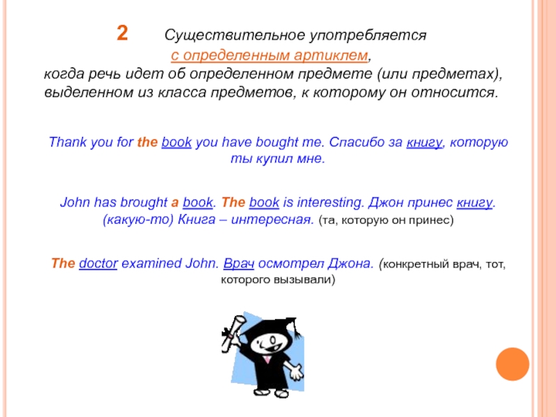 John has brought a book. The book is interesting. Джон принес книгу. (какую-то) Книга – интересная. (та, которую он принес)