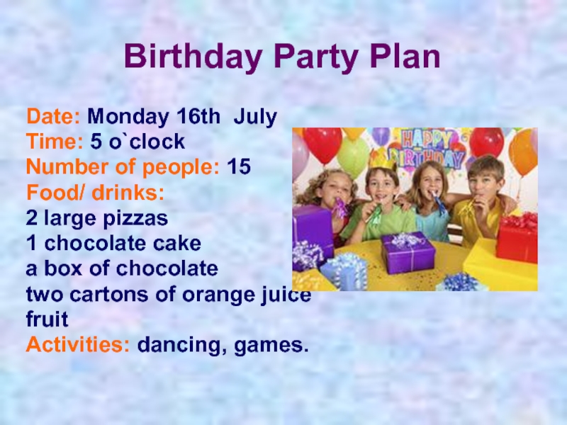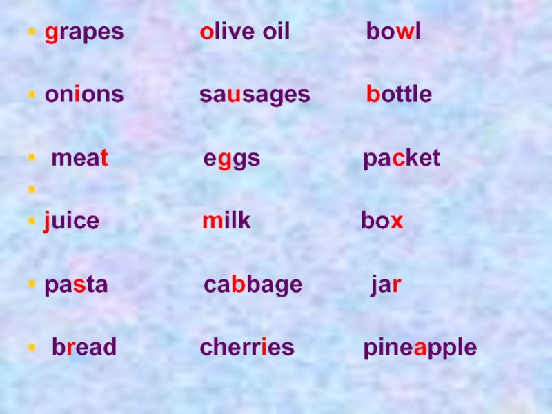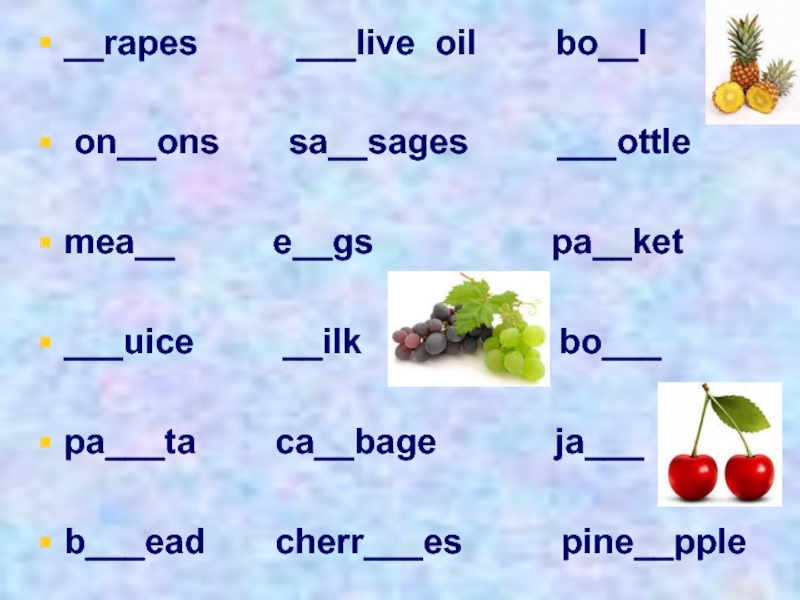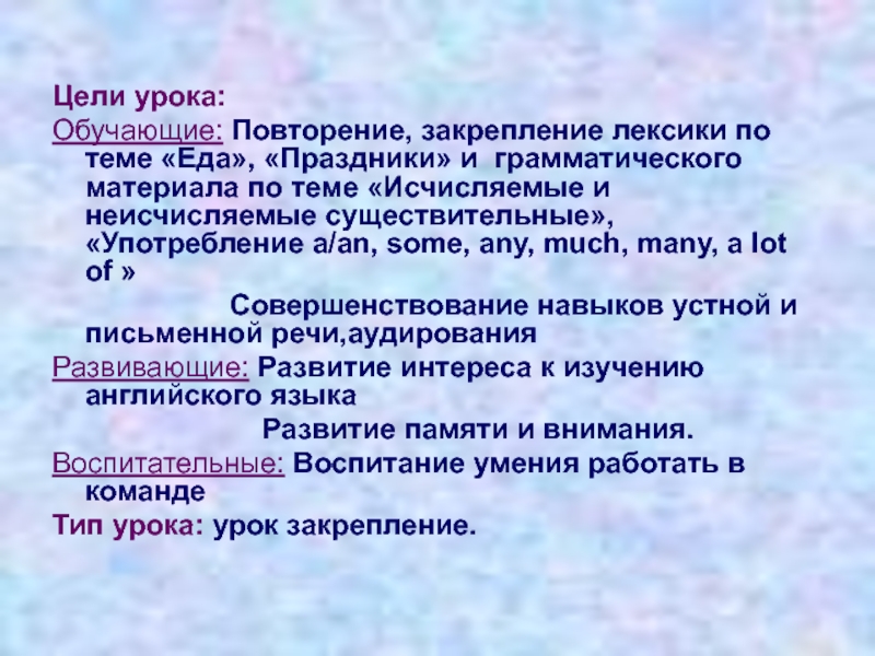 Обучающие: Повторение, закрепление лексики по теме «Еда», «Праздники» и