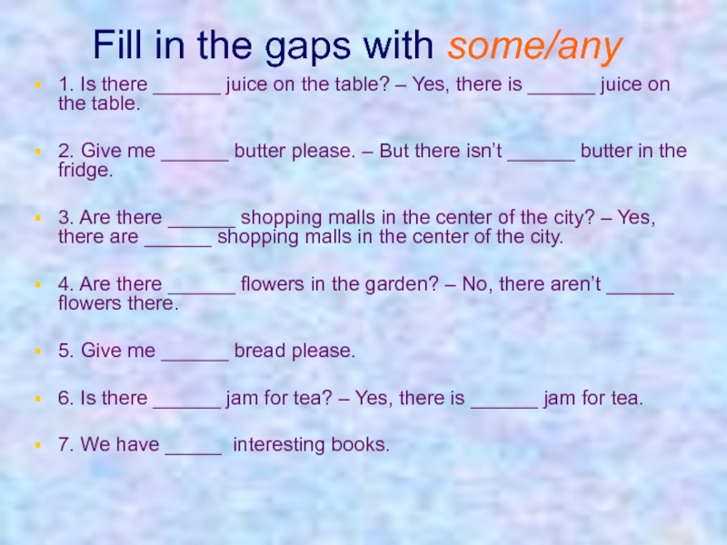 6. Is there ______ jam for tea? – Yes, there is ______ jam for tea.