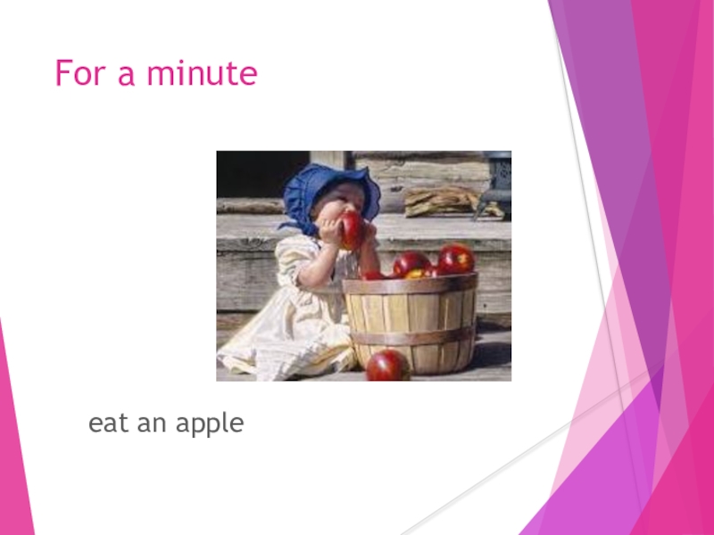 She has been eating an apple for a minute.