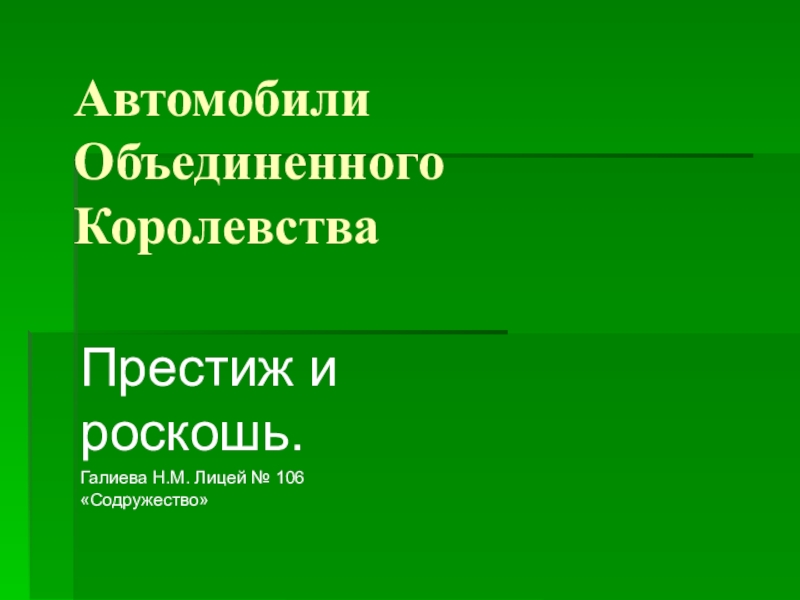 Автомобили Объединенного КоролевстваПрестиж и роскошь.Галиева Н.М. Лицей № 106 «Содружество»