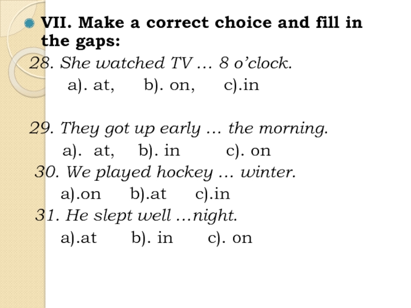 a) watched TV b) watch TV c) are watching