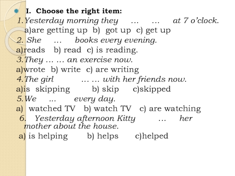 6. Yesterday afternoon Kitty … her mother about the house.