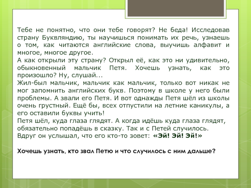 Слайд 3Тебе не понятно, что они тебе говорят? Не беда! Исследовав страну