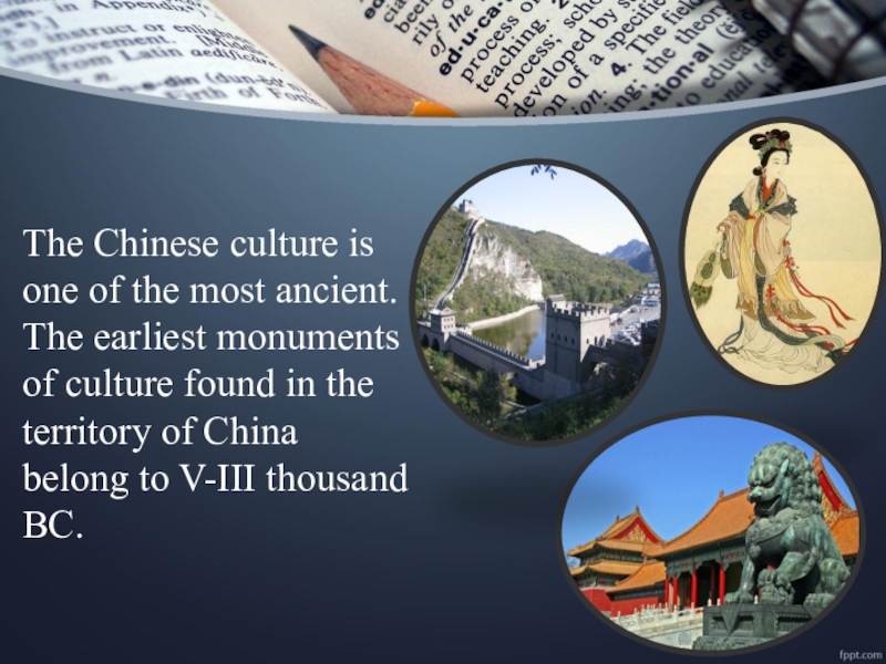 Слайд 4The Chinese culture is one of the most ancient. The earliest