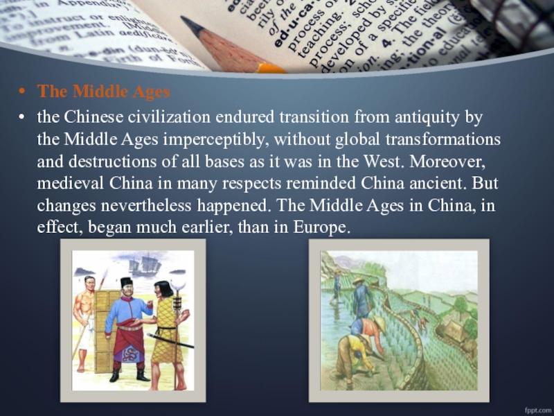 The Middle Ages the Chinese civilization endured transition from antiquity by the Middle Ages imperceptibly, without global