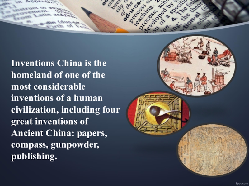 Слайд 3Inventions China is the homeland of one of the most considerable