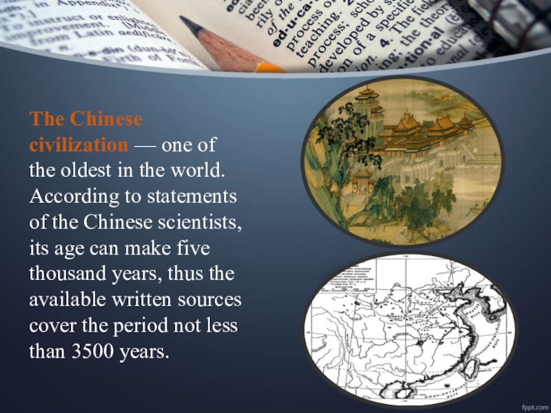 The Chinese civilization — one of the oldest in the world. According to statements of the Chinese scientists, its age can make five thousand years, thus the available written sources cover the period not less than