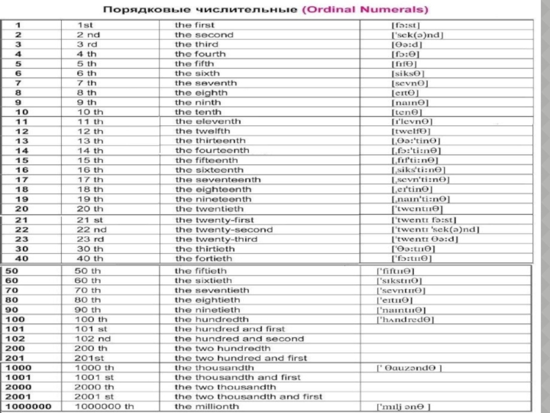 порядковых числительных.