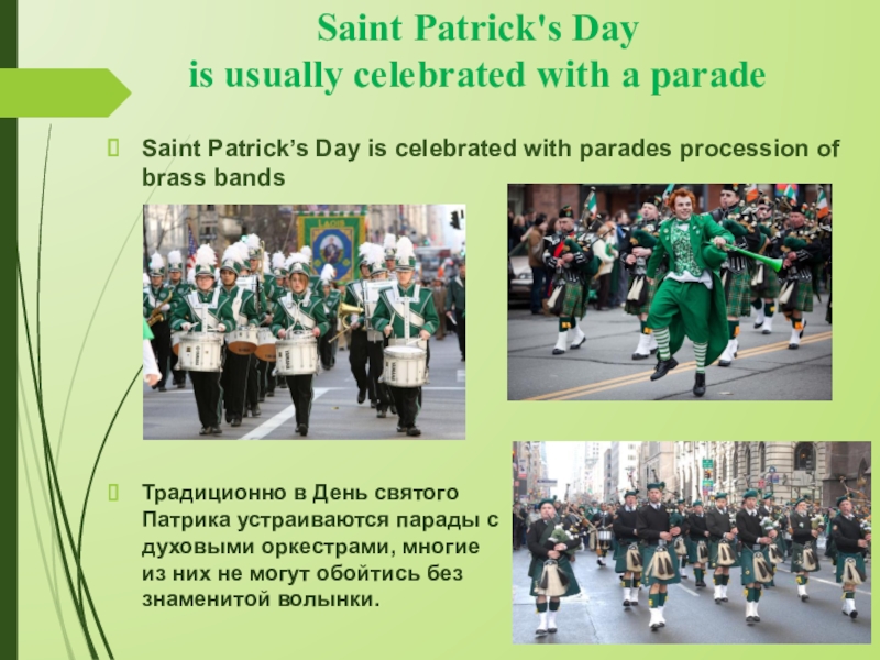 Saint Patrick’s Day is celebrated with parades procession of brass bands