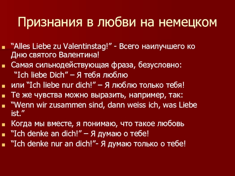 или “Ich liebe nur dich!” – Я люблю только тебя!