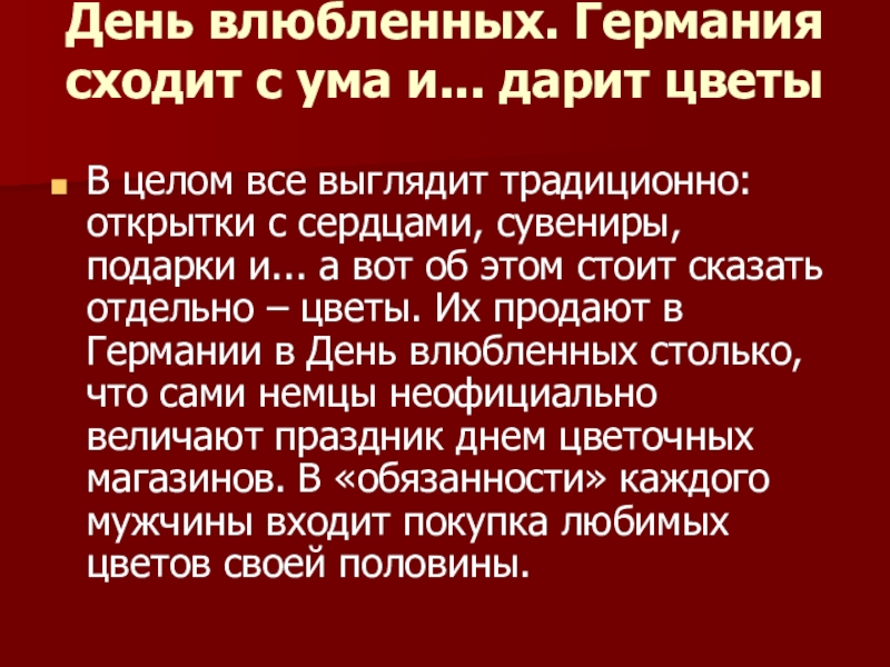 Слайд 24День влюбленных. Германия сходит с ума и... дарит цветы