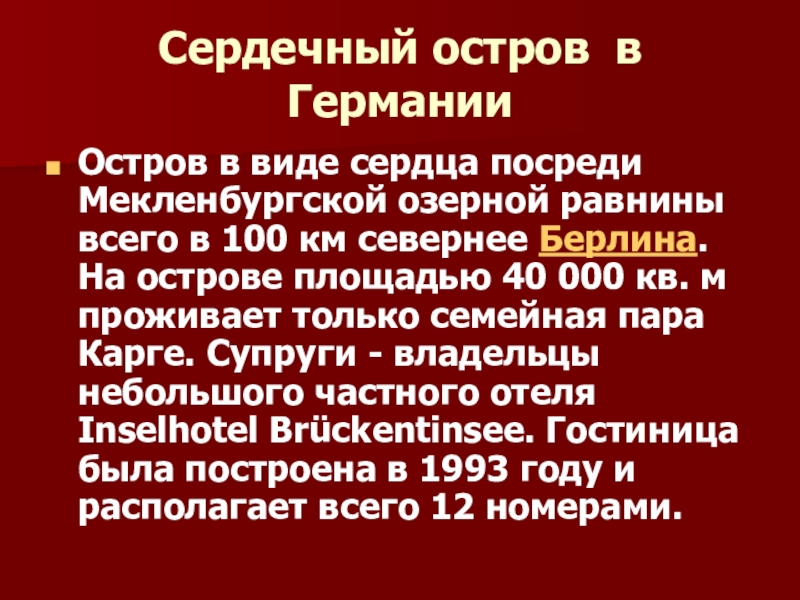 Слайд 20Herzinsel in Deutschland – сердечный остров в Германии
