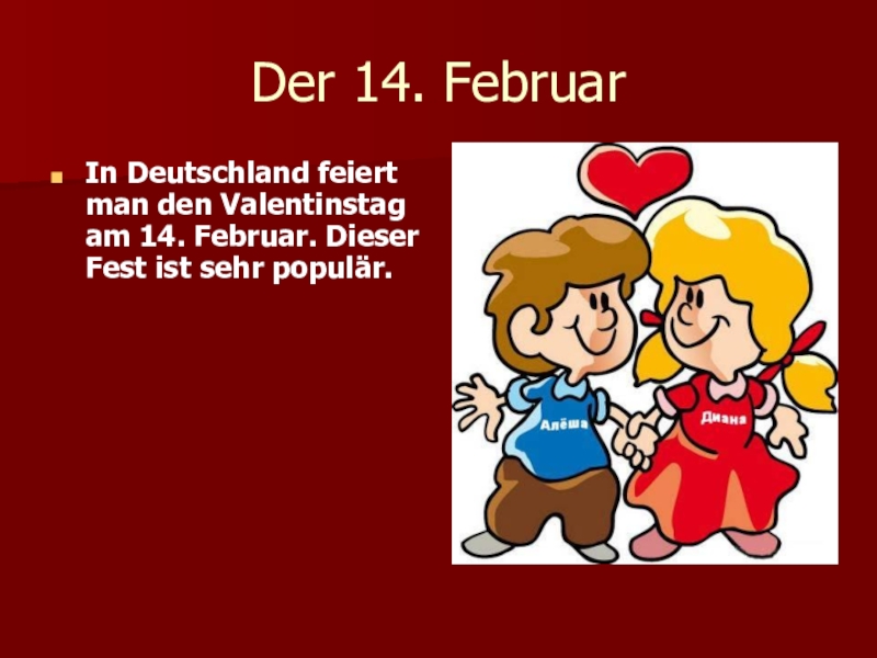 Слайд 2In Deutschland feiert man den Valentinstag am 14. Februar. Dieser Fest
