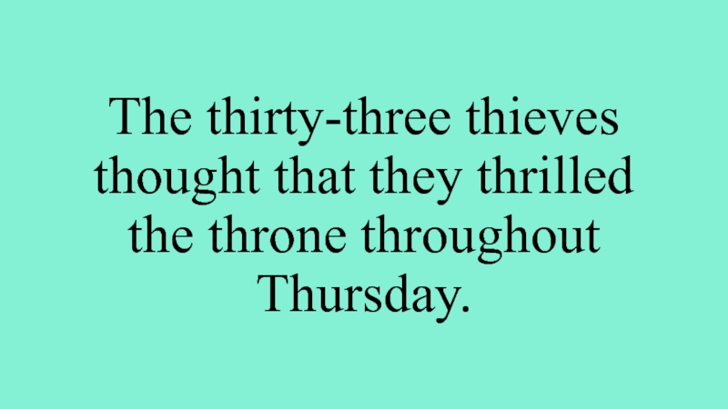 Слайд 3 The thirty-three thieves thought that they thrilled the throne throughout Thursday.