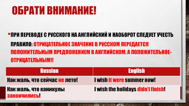 Обрати внимание!При переводе с русского на английский и наоборот следует учесть правило: отрицательное значение в русском передается