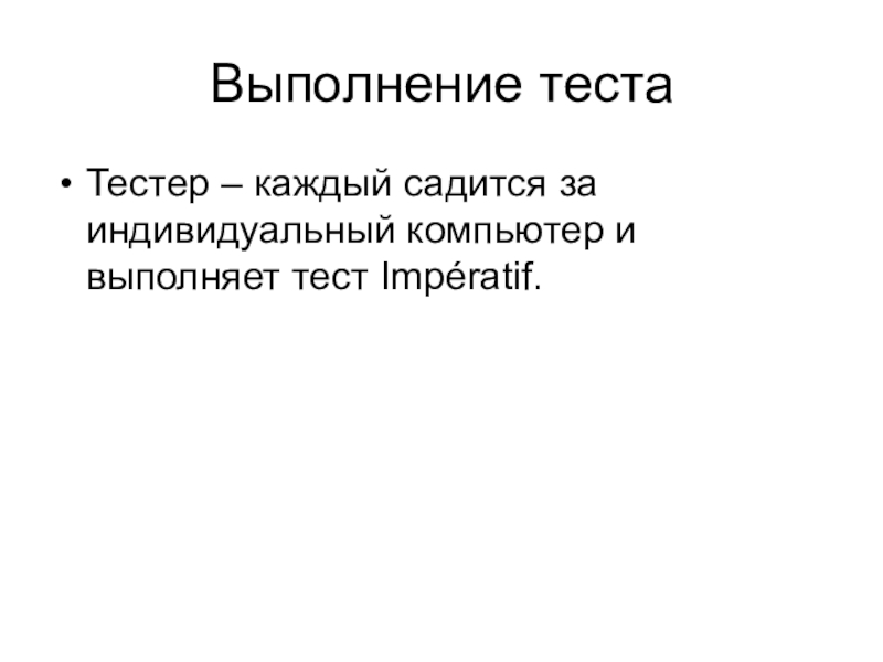 Выполнение тестаТестер – каждый садится за индивидуальный компьютер и выполняет тест Impératif.