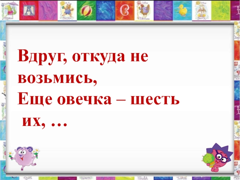 Слайд 11Вдруг, откуда не возьмись, Еще овечка – шесть