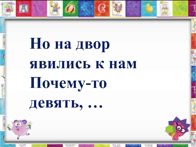 Слайд 17Но на двор явились к нам Почему-то девять, …